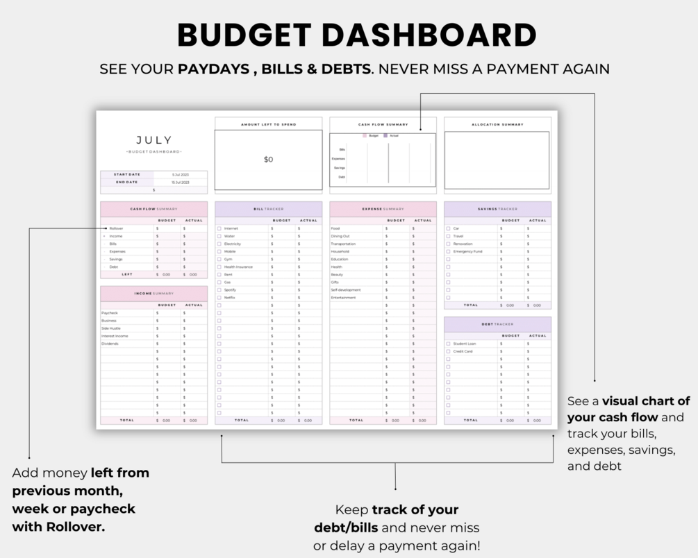 - Budget vs. Actual Analysis: Evaluate your financial performance by comparing your budgeted amounts with actual expenditures. Identify areas for improvement and celebrate your financial victories.